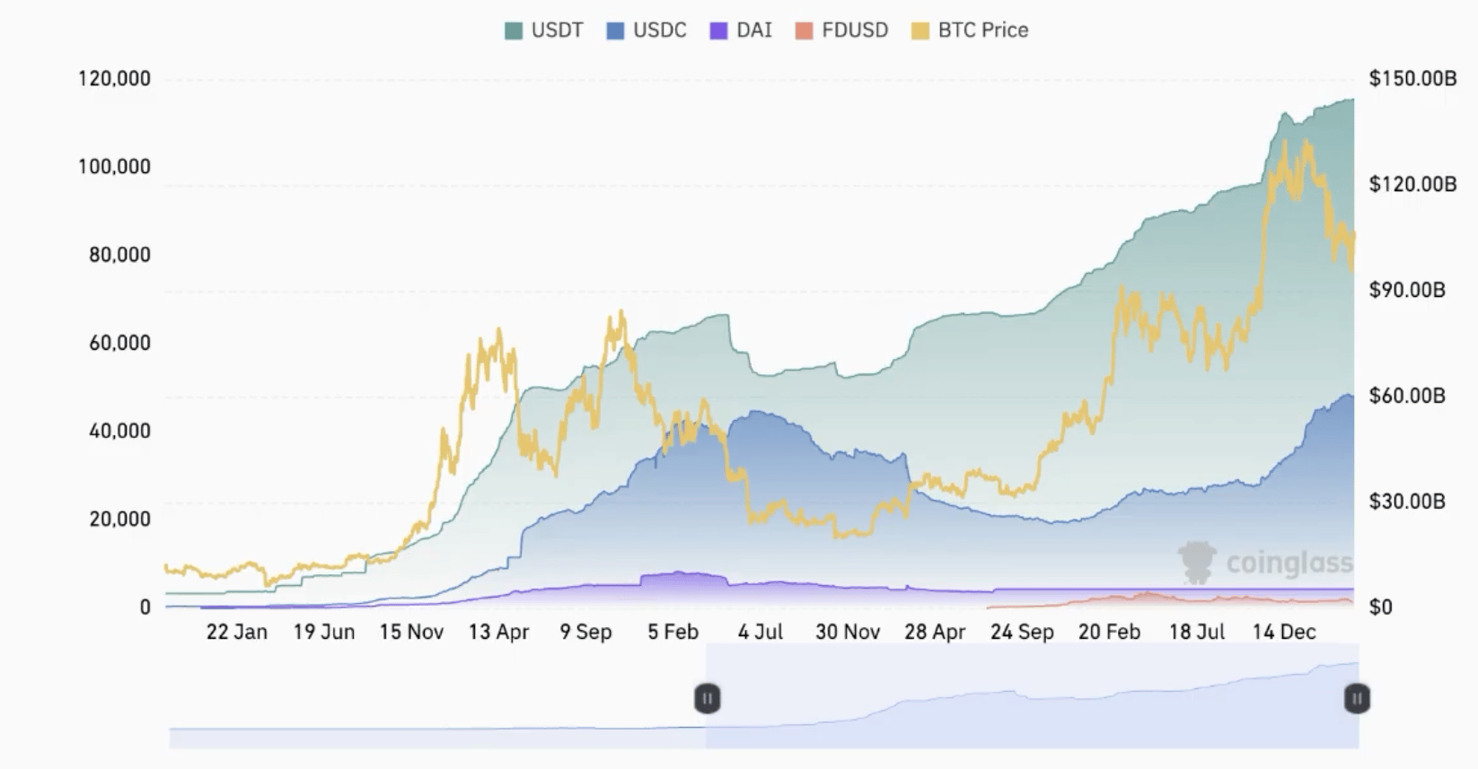 We are currently seeing stablecoins eyeing a $2 trillion market cap, a substantial surge that Standard Chartered projects it will force the U.S. Treasury to increase T-bill issuance to satisfy collateral demand.